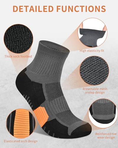 ARFNKIM Mens Socks 6 Pairs, Anti-Blister Running Athletic Socks Cushion Work Sock Wear-Resistant Breathable Hiking Trekking Walking Cycling Sports Socks – Men Women