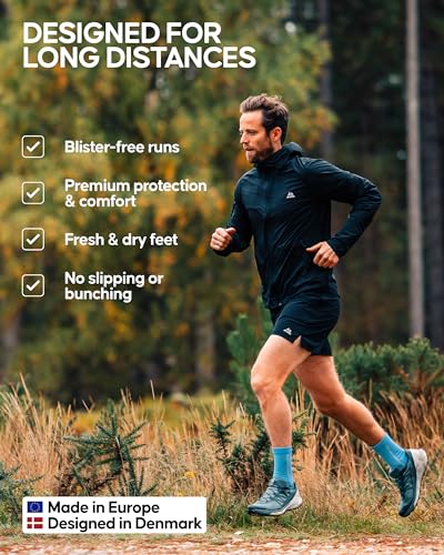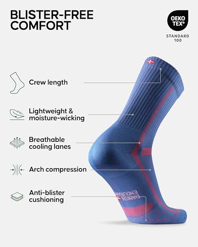 DANISH ENDURANCE Cushioned Running Socks for Long Distances, Crew Length, Anti-Blister for Men & Women, 3 or 5 Pack