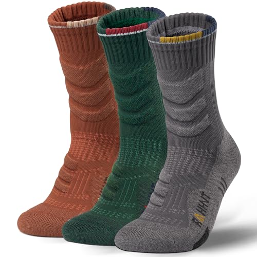 Merino Wool Compression Anti-Blister Hiking Socks Outdoor Walking Crew Socks for Men Women, Breathable Moisture Wicking, Cushioned, Seamless Toe, (3 Pairs)