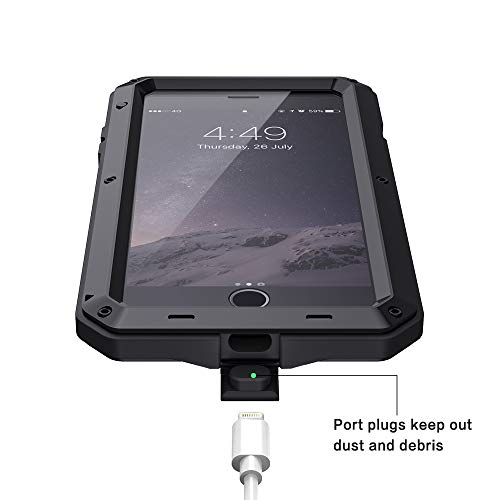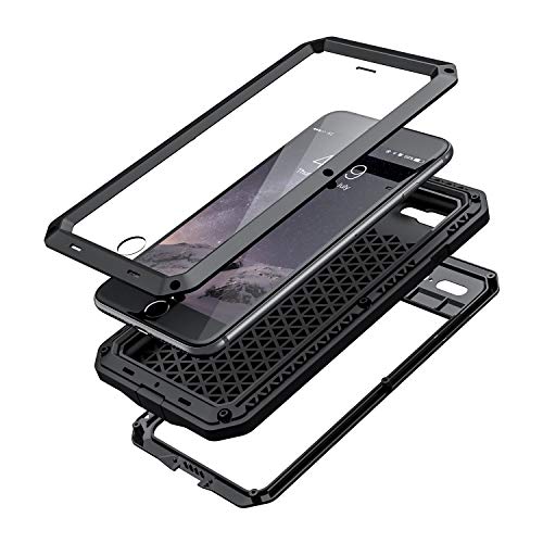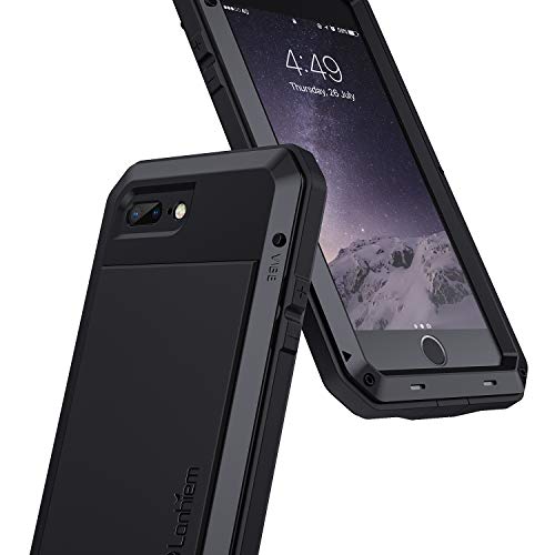 Lanhiem iPhone 7 Plus Case, iPhone 8 Plus Case [Tough Armour] Heavy Duty Shockproof Metal Case with Built-in Glass Screen, 360 Full Body Protective Cover for 7+ 8 Plus, Dust Proof Design -Black