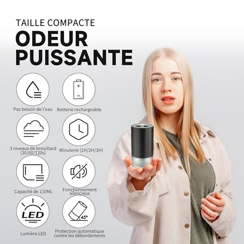Waterless Essential Oil Diffuser, Rechargeable Car Air Fresheners Aromatherapy Portable Diffuser 110ml with Timers Auto-Off Function Type-C Charging for Home Car Office(Button)