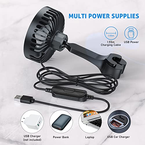 【USB POWER】The USB car fan is compatible with car charger, power bank, laptop, and other USB-enabled power supply. The length of the charging cable is 1.55m/61 inch.
