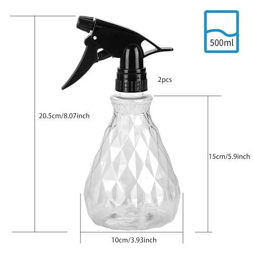 Vwoqiy 2 Pcs Empty Spray Bottles, 500ml Water Spray Bottles with Adjustable Spray Head, Refillable Trigger Sprayer Bottles, Atomizer Plant Mister Sprayer Bottles for Plants (Clear)