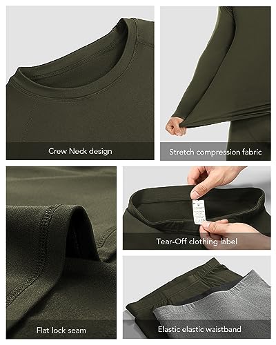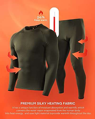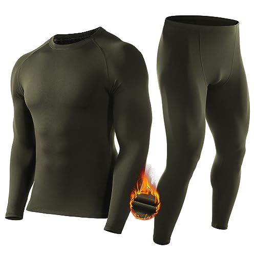 Roadbox Thermal Underwear Mens, Fleece Lined Base Layer Set with Quick-Dry, Breathable, Lightweight, for Running, Cycling, Skiing, Motorbike, Outdoor Work in Winter
